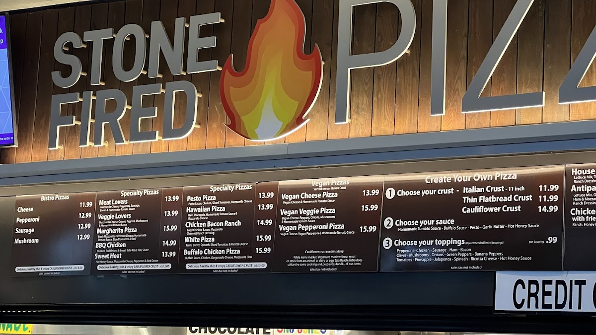 Vegan Cheese, Peppers, Onions, Mushrooms & Homemade Tomato Sauce.